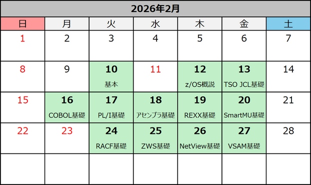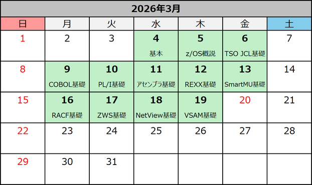 内容:TSO・ISPF基礎、JCL基礎、ユーティリティ概説